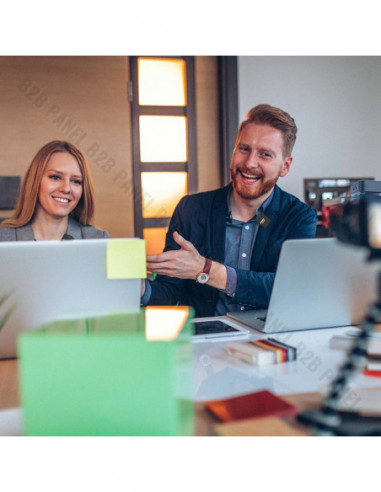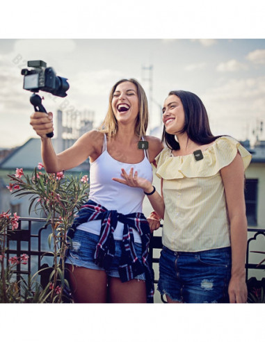 A 400mAh chargeable Li-ion battery is in-built to support 8-hour-long recording. It supports charging-while-recording and can get 50% power in just 40 mins. Its status is seeable on the power indicator which flashes to tell low battery, stays green when charging, and is off when fully charged. The 3.5mm TRS audio output on the receiver is open to the included 3.5mm TRRS/TRS cables, making it a wireless lavalier microphone for iPhone®, android, DSLR, camcorder, and computer.
