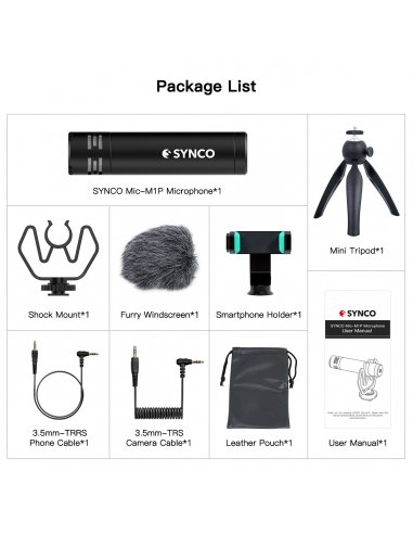 Synco M1P mikrofon nakamerowy + mini statyw + uchwyt mobilny