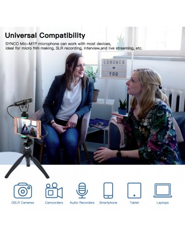 Mikrofon SYNCO M1P jest kompatybilny z większością standardowych urządzeń. Bez problemu podłączysz go do laptopa, aparatu, telefonu, kamery czy tabletu. Dzięki temu możesz swobodnie korzystać z niego podczas codziennej pracy. Problem braku kompatybilności nie będzie już utrudniał Ci życia - z SYNCO możesz działać tak, jak chcesz.