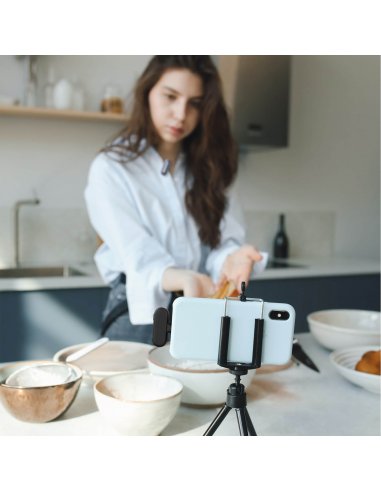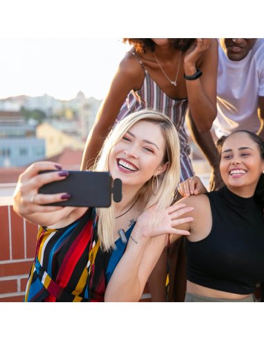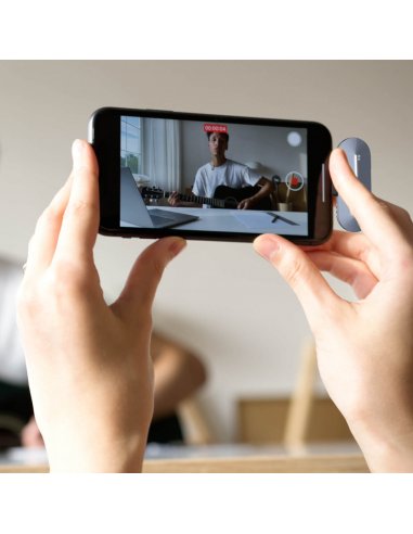 The mini microphone for iPhone® and Android phone provides up to 5 hours of recordings. Just 10 minutes of charging provides about 45-min shooting. With two additional charges in the case, users can get up to 15 hours of total recording time.