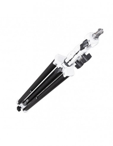 The GlareOne Stork tripod can be used as a base for all types of lights, including compact studio lights, flash heads, continuous light and LED panels, speedlites and more. With a double-sided mounting pin equipped with 1/4"-20 and 3/8" screws, many accessories such as reporter lamp bracket, clamps, brackets, etc. can be attached to it. In combination with the GlareOne Kenku 130 arm, it can be used as a blended mount or even as a crane for small and lightweight lamps. In combination with a crossbar (available separately) and a second tripod it can be used as a part of a mobile set for hanging backdrops made of paper or fabric.